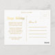 Gorgeous faux gold foil elegant script lettering on the front of this designer postcard which you can upload into with your own christmas family photo portrait. Easily and quickly personalize this designer professionally printed Christmas photo postcard here and now by just typing over the example text and adding your own photograph. Click on the small example photo thumbnail to upload your own image from your hard drive or phone/tablet. Elegant, chic, simple and classy bronze script/cursive typography.