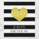 Gold Heart Black White Stripe Happy Birthday Wine Label