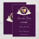 Save the Date with a design of two wedding dresses on either side of a gold heart. This item is part of a wedding set that includes a wedding invitation, rsvp card, and more. (The gold elements in the set are faux gold and not gold foil.)