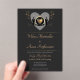 An acrylic wedding invitation with a design of two grooms, standing on either side of a gold heart (non-foil gold tone). Customize it for your wedding, today.