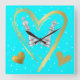 Add a touch of elegance to your wall with this square wall clock featuring a stunning design of gold hearts encircling regal King and Queen chess pieces on a turquoise background. Crafted with precision and style in mind, this clock not only enhances your decor but also keeps you punctual with its reliable timekeeping. Perfect for any room, it combines functionality with sophisticated aesthetics, making it a charming addition to your home or office space.