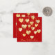 Customize these cute classroom Valentine's Day gold hearts on a string card for school Valentine's Day festivities. Add your special greeting on both the front and the back of these love day school cards. Gold hearts appear to be hanging from the top of the note card from gold string. Some gold hearts have a delectate red swirl on them for extra flair. The background is a bright and bold Cornell red. Enjoy! Designed by mw1deisgnsart.