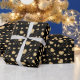 Gold Hearts on Black Wrapping Paper