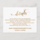Offer your guests handy cards to help them remember your wedding details and stay in the loop as plans unfold with this distinctive, festive card. A striking text overlay reading "details" was designed using a modern, script font that has been embellished with hearts and overlaid with a faux gold foil effect. Use the template fields to customize these enclosure cards with your personal details. The background is an editable white you may change to any other colour you prefer. Please don't hesitate to reach out if you have special requests. Other sizes are available. // 80 //