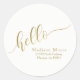 Modern lettered in gold "hello" typography return address envelope seal with a name personalized design. If you need assistance with placement or personalization, please use the "Contact This Designer" link on the right hand side of this page.