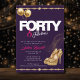 Elegant and luxurious dark purple and gold 40th birthday invitation, perfect for a glamourous and sophisticated celebration. Featuring sparkling glitter, ballons and high heels, this design exudes style and sophistication. Ideal for a fabulous party for friends and family, this invitation is fully customizable and easily edited with the design tool - name, font, and event details to make it uniquely yours. Add your own photo (for best result in square format).