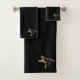 Gold Hummingbird with wings stretched out (bl) Bath Towel Set