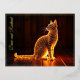 Gold illuminated cat light and shadow pets art foil holiday postcard
