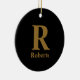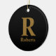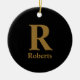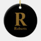 Gold Initial/First/Family Name On Black Ceramic Ornament