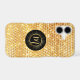 This stunning phone case has a gold jewel like pattern background with star shines. Your monogram is in gold script at the center of a black circle banner lined in shiny gold with star burst radiating lines. Bright, colorful, and elegant for her!
