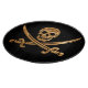 Gold coloured skull and crossed swords. For the discriminating pirate. Please note this is an image, not real gold or metal.