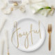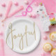 Joyful in a faux gold foil script on these white paper plates in 2 sizes, are stylish for any Christmas holiday occasion or give as a hostess gift. MATCHING items in our store.