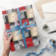I made 3 versions of this, ordered each, and forgot to take photos; yet, the gifts were beautiful with the wrap, tote, ribbons (I ordered 2 sizes), tags, and more! I absolutely love this and have to laugh since I've been on a kick lately creating our gift bags to put presents in I've purchased for people. Not only do I spend all night creating the bags, tissue, tags, etc., but the recipients seem more amazed with the Presentation Theme I created here on Zazzle than the nice gift (and I give really nice gifts .... crystal goblets from the best company, etc.)! I am thrilled to be able to say what I've said since my first Zazzle purchase 10 years ago: POP OFF THE PAGE PERFECT! Every gift tote bag I have created and ordered is better print quality than any on the market. I'll add photos of the rest of the theme; yet, the item you see on the product page is the exact product as opposed to my camera flash!