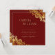 Présentez nos invitations de mariage à la dentelle d'or avec un riche arrière - plan bordeaux ! Ces invitations sont parfaites pour les couples qui veulent ajouter une touche de romantisme et de sophistication à leur jour de mariage. Le design complexe en dentelle dorée à l'allure de feuille s'oppose à l'arrière - plan bordeaux profond, créant un effet superbe et luxueux. Ces invitations sont parfaites pour les mariages en forme ou en cravate noire, ainsi que pour les couples qui veulent une invitation audacieuse et glamour. La technique d'impression à plat permet à vos invités de comprendre facilement les détails de votre journée spéciale en lisant le texte de manière claire et simple. Les invitations sont entièrement personnalisables, de sorte que vous pouvez modifier le texte, la police et la couleur pour correspondre à votre thème et à votre style mariage. Nos invitations de mariage en dentelle d'or contre un arrière - plan bordeaux vous impressionneront et donneront le ton pour votre mariage. Elles sont parfaites pour les couples qui veulent une invitation luxueuse et inoubliable qui célèbre leur amour de manière audacieuse et romantique.