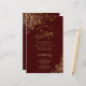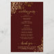 These wedding programs are elegant and tasteful, while still being budget friendly. The design features ornate golden faux foil lace with gold text on a deep auburn brown colored background. The typography features lacy script calligraphy, and there is room for details on the ceremony, the bridal party, and a short thank you.