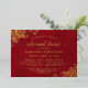 This beautiful rehearsal dinner invitation features an elegant design with gold foil printing on a marbled crimson red background. The design features fancy script calligraphy with golden lace curls and swirls in the corners. There is space for information on both the wedding rehearsal and the dinner. Wonderful way to thank the bridal party while making sure they have all of the info they need.