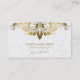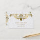 Elegant white plush floral damasks background with gold tones vintage swirly floral lace. Fully customizable double sided business card template.