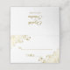 These elegant place cards are designed to for you to write in your guest's name and table number. They feature a classic white background with frilly ornate gold faux foil floral accents in the corners. The front has space for you to write in the name of your guest and their table number, while the back displays the names of the couple and wedding date.