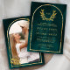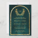 Gold Laurel Wreath Leaves Dark Teal Wedding Invitation