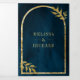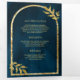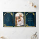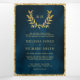 Gold Laurel Wreath Leaves Ocean Blue Wedding Tri-Fold Invitation