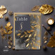 Immerse your wedding in a tapestry of abstract impasto beauty – delicate gold leaves scatter like whispered promises across a charcoal canvas. A symphony of light and darkness dances in each stroke, creating a tactile masterpiece that resonates with modern brides seeking both boldness and intimacy.