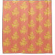 Modern botanical shower curtain pattern features gold fern leaf silhouettes on coral background