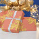 Gold Leaf on Coral Botanical Pattern Wrapping Paper