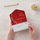 This pretty all season wedding invitation with tear away RSVP card in tones of gold and dark red will give a sense of elegance to your wedding! The inside has a graceful gold swirl adorned with a few leaves, and there's a subtle gold confetti overlay to add a bit of sparkle. Your wedding text is in pale gold at the right of the leaf swirl image. Everything is placed on a stunning red gradient background. The bottom tear away RSVP portion has the swirl image continued, but is white to make it easy for your respondent to mark. If you don't need a text field, just blank it out, and if you need help organizing different text, please contact us. We are always happy to help. If you're having a buffet reception, we can work with you to re-design the RSVP portion, so don't hesitate to ask! An added bonus and personal touch is your own photograph on the back flap.