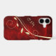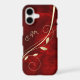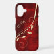 Here's an elegant phone case that features a modern gold leaf swirl against a deep red gradient background. Your two letter monogram is at the left side in matching pale gold.