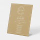 We're loving this trendy, modern gold wedding in loving memory pedestal sign! Simple, elegant, and oh-so-pretty, it features a hand drawn leafy wreath encircling a modern wedding monogram. It is personalized in elegant typography, and accented with hand-lettered calligraphy. Finally, it is trimmed in a delicate frame. Veiw suite here: https://www.zazzle.com/collections/gold_leafy_crest_monogram_wedding-119668631605460589 Contact designer for matching products to complete the suite, OR for colour variations of this design. Thank you sooo much for supporting our small business, we really appreciate it!