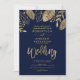 Gold leaves fall typography navy blue wedding invitation