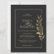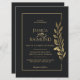 Gold Leaves Modern Black Wedding Invitation