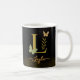Luxurious gold letter L adorned with delicate butterflies and botanical accents, designed for a feminine and elegant mug. Perfect for coffee, tea, or gifting, this high-quality artwork includes a customizable name for a chic and personal touch.