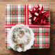 Festive photo card featuring elegant line-drawn gold botanical Christmas wreath with watercolor red bow and pine. Back features editable text fields.