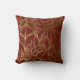 Gold Line Leaf Pattern on Maroon Red Throw Pillow