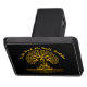 A serene golden Buddha figure sits in meditation beneath a lush and intricately detailed tree filled with leaves. This tranquil scene reflects harmony and spirituality, showcasing the union of nature and mindfulness in a peaceful setting.
