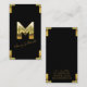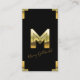 Solid, clean black background with a shiny gold letter M and a script font for your name.Classy.