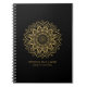 Gold mandala hearts and swirls on a black background. Customizable text.