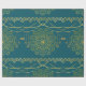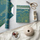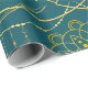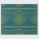 This wrapping paper features an elegant and intricate gold mandala pattern on a deep teal background. The design blends traditional ornamental elements with a modern flair, showcasing symmetrical mandalas and delicate hanging accents that evoke a sense of luxury and sophistication. The gold detailing is both intricate and refined, making this wrapping paper ideal for special occasions such as weddings, festivals, and celebrations. The rich colour contrast between the gold and teal creates a striking visual appeal, perfect for gifts that need a touch of elegance.