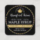 Classy maple syrup business card to promote your traditionally made pure local maple syrup. Gold sugar maple leaf on black background.