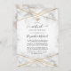 Online long distance virtual wedding ceremony invitation featuring a marble texture with a gold geometric frame and a gold foil marble reverse.