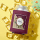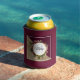 Can cooler with a golden marble pattern and a solid burgundy colour layered diagonally together. A circle with a faux gold foil border which is layered over a pretty floral bouquet with roses, carnations and other flowers. Personalize with your name and monogram inside the circle.