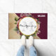 Welcome doormat with a monogram letter and name. Designed with a golden marble pattern and a solid burgundy colour layered diagonally together. A circle with a faux gold foil border which is layered over a pretty floral bouquet with roses, carnations and other flowers. Personalize with your name and monogram inside the circle.