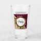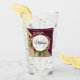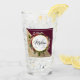 Drinking glass with a golden marble pattern and a solid burgundy colour layered diagonally together. A circle with a faux gold foil border which is layered over a pretty floral bouquet with roses, carnations and other flowers. Personalize with your name and monogram inside the circle.