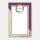 Large sized sticky notes with a golden marble pattern and a solid burgundy colour layered diagonally together. A white rectangle layered over top to write inside. A circle with a faux gold foil border which is layered over a pretty floral bouquet with roses, carnations and other flowers, placed at the top. Personalize with your name and monogram inside the circle.