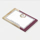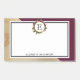 Large sized, landscape orientation, sticky notes with a golden marble pattern and a solid burgundy colour layered diagonally together. A white rectangle layered over top to write inside. A circle with a faux gold foil border which is layered over a pretty floral bouquet with roses, carnations and other flowers, placed at the top. Personalize with your monogram initial inside the circle.
