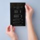 Elegant flyer design displays your services, price list or business information in classic white lettering on a rich black background accented with vertical strands of faux gold foil string lights cascading from the top. Includes four customizable headings and body text fields, and space for your business contact information along the bottom. To adjust layout, enter your text and then use the Customize function to change positioning and font sizes.