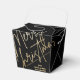 Merry Christmas in a faux gold foil script and your names in chic lettering, these black take out style boxes are a stylish way to package holiday party favours or gifts.