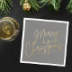 Merry Christmas text in chic fancy lettering in gold faux foil is featured on grey holiday paper napkins. MATCHING paper plates and more in our store.