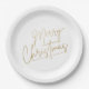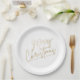 Gold Merry Christmas on White Paper Plate
